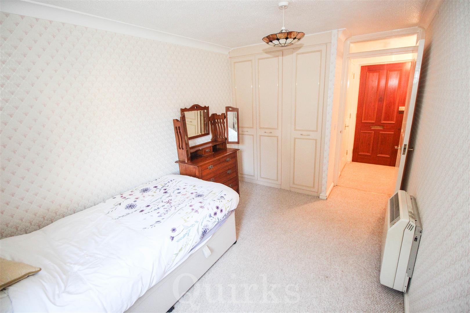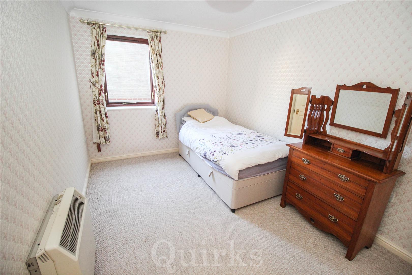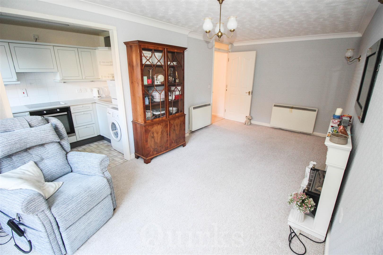 WELL PRESENT GROUND FLOOR RETIREMENT APARTMENT IN POPULAR COMPLEX, CLOSE TO SHOPS. Once inside the entrance hall, there is a very large and useful walk in storage cupboard. The double bedroom has window to rear, built in wardrobe and electric heater. A spacious shower / wet room with walk in shower, wash hand basin and low level W.C. The spacious lounge / diner has a window and door to rear opening onto a communal patio area. A refitted kitchen has window to rear, fitted eye and base level units with work surfaces over incorporating sink unit, space for washing machine and fridge / freezer, built in electric oven with electric hob and extractor fan over. Externally there are communal gardens.