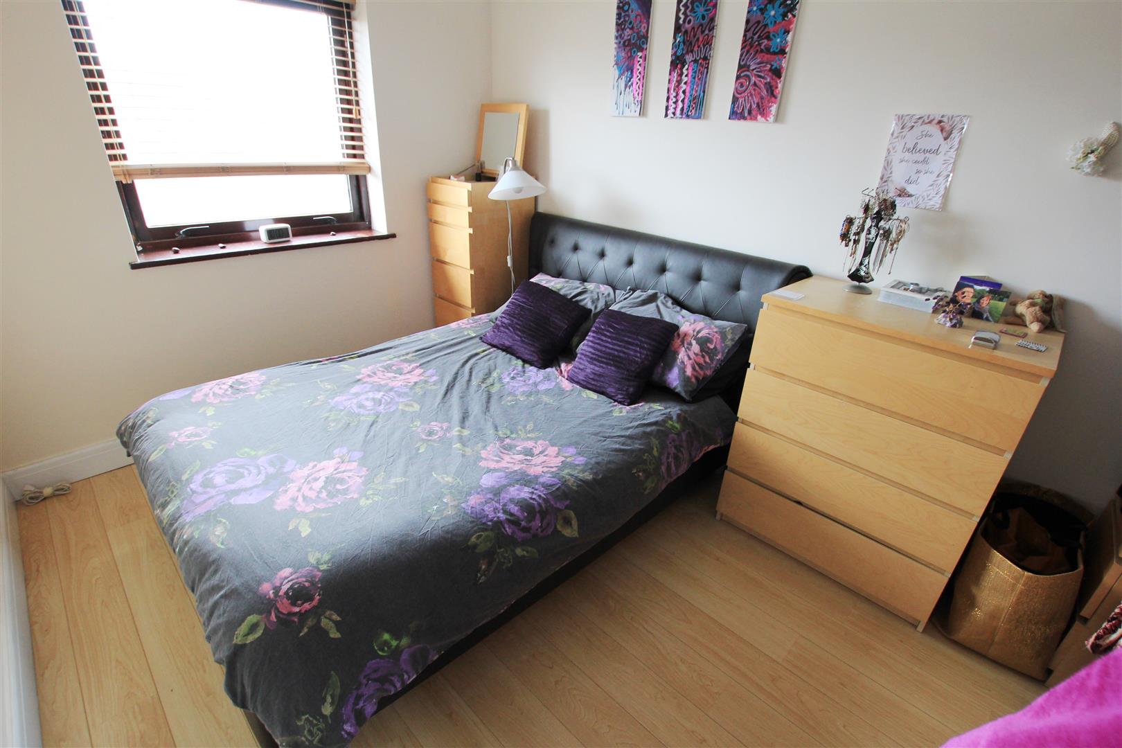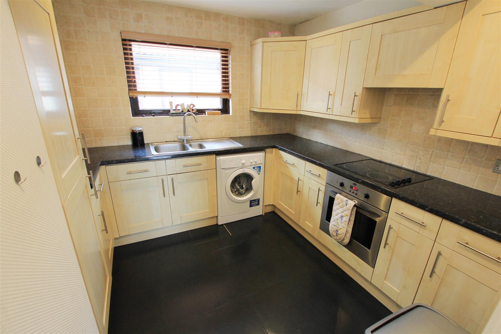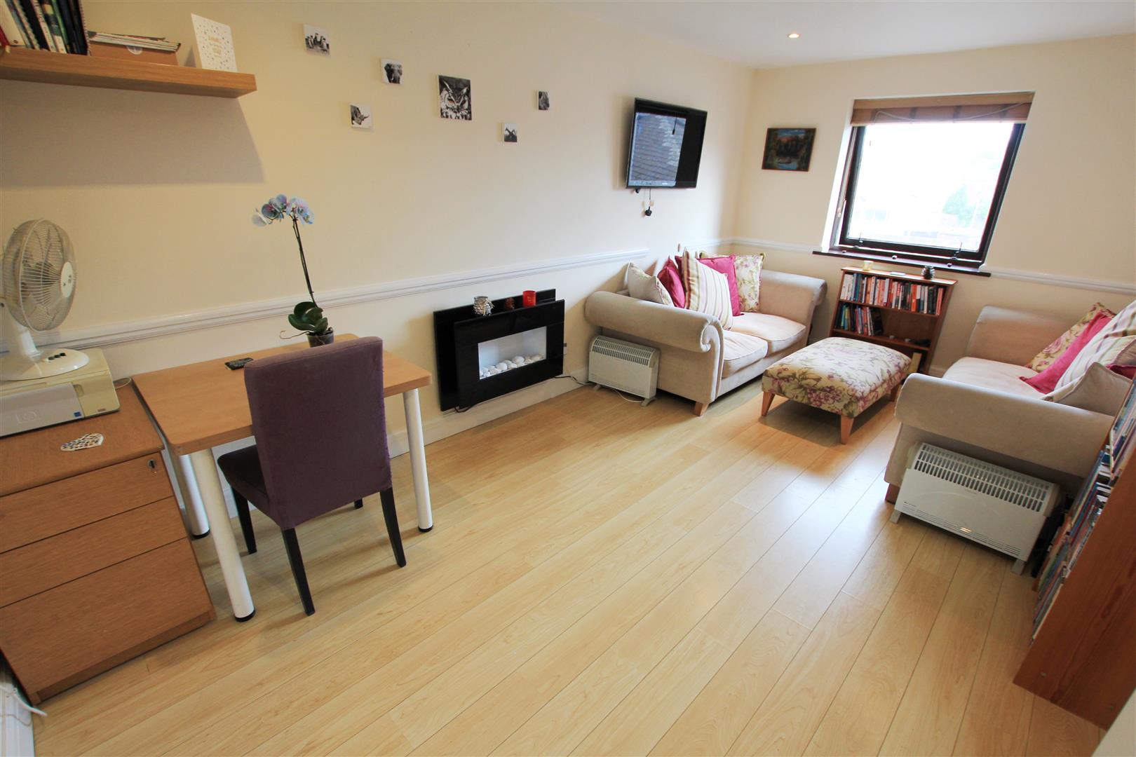 BRIGHT AND SPACIOUS FIRST FLOOR MAISONETTE LOCATED CLOSE TO ALL AMENITIES. The private entrance door leads into the entrance hall with storage cupboard, laminated flooring and doors to all rooms. The large kitchen has double glazed window to front, range of fitted eye and base level units with work surfaces over incorporating one and a half bowl sink unit, built in electric oven with electric hob and extractor fan over, integrated fridge/freezer, smooth ceiling with downlighters and space for washing machine. Good sized lounge/diner with double glazed window to rear, laminate flooring, smooth ceiling with downlighters. The double bedroom has double glazed window to rear, wall mounted electric heater, coved cornice to smooth ceiling with downlighters. Bathroom with Three piece suite, tiled walls and floor and double glazed window to front. Externally the property has an ALLOCATED PARKING SPACE.