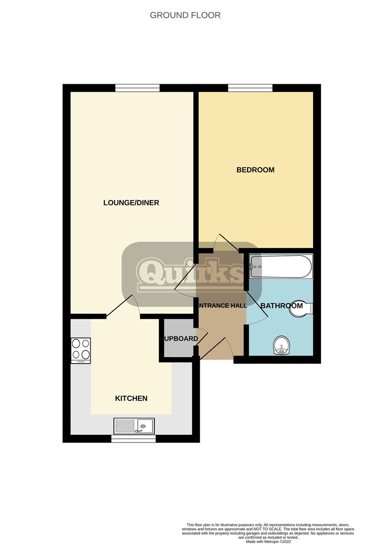 BRIGHT AND SPACIOUS FIRST FLOOR MAISONETTE LOCATED CLOSE TO ALL AMENITIES. The private entrance door leads into the entrance hall with storage cupboard, laminated flooring and doors to all rooms. The large kitchen has double glazed window to front, range of fitted eye and base level units with work surfaces over incorporating one and a half bowl sink unit, built in electric oven with electric hob and extractor fan over, integrated fridge/freezer, smooth ceiling with downlighters and space for washing machine. Good sized lounge/diner with double glazed window to rear, laminate flooring, smooth ceiling with downlighters. The double bedroom has double glazed window to rear, wall mounted electric heater, coved cornice to smooth ceiling with downlighters. Bathroom with Three piece suite, tiled walls and floor and double glazed window to front. Externally the property has an ALLOCATED PARKING SPACE.